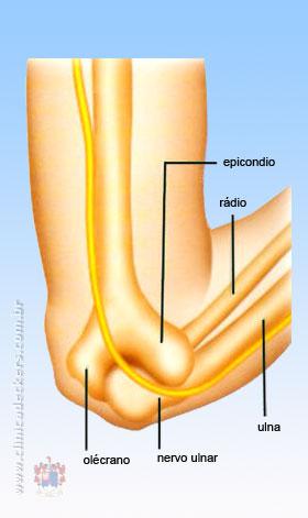 O nervo ulnar pode ser comprimido em vários locais, sendo mais comum ocorrer no sulco atrás do cotovelo - o túnel cusital - local onde refirimos "choque" ao sofrermos um trauma direto.