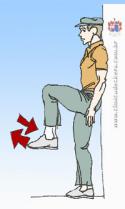 15 - Encoste em uma parede e flexione o quadril e o joelho de uma das pernas a 90º.