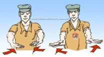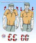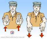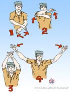 22 - Leve as duas mãos a frente do tronco e faça 10 movimentos de vai e vem com o punho, para dentro e para fora, levando as pontas dos dedos de um lado para o outro.