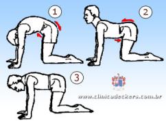 3. Arqueie as costas devagar como mostrado (2);
