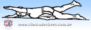 3. Sem ajudar com as mãos, eleve a cabeça eos ombros, curvando o tronco diagonalmente para um lado como mostrado;