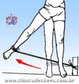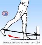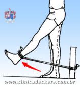 1. Fixe a tira elástica a um objeto firme e ao tornozelo esquerdo;