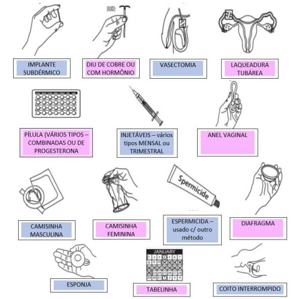 - anticoncepcionais hormonais X não-hormonais (sem hormônios)