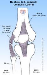 A distensão é o estiramento ou a ruptura de um ligamento, que é uma forte tira de tecido que liga um osso ao outro. O ligamento lateral colateral está localizado na parte lateral do joelho; ele liga a parte de baixo da coxa (fêmur) ao osso externo da perna (fíbula).