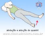 Deitado sobre as costas, com as pernas estendidas e os dedos dos pés virados para cima, deslizar a perna lesionada lateralmente, o mais que puder. Voltar a posição inicial e repetir 10 vezes.