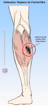 A distensão é uma lesão na qual fibras musculares ou tendões são estirados ou rompidos; no caso da panturrilha, a lesão é nos músculos e tendões atrás da perna, abaixo do joelho.