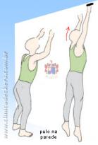 Pular com os braços estendidos acima da cabeça e tentar tocar a fita adesiva.