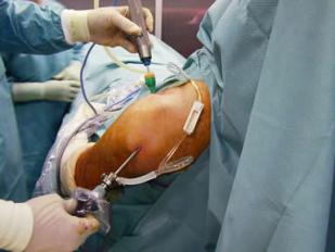 O médico, então, irá inserir o artroscópio e um ou dois instrumentos na articulação do joelho através de pequenas incisões. Um fluído será injetado dentro do joelho para expandir a articulação, com o intuito de aumentar a visibilidade das estruturas.