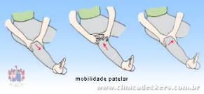 Depois, tentar empurrar suavemente a patela para dentro em direção à outra perna e manter por 10 segundos.