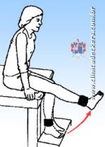 Sentar em um banco com as tornozeleiras presas aos tornozelos, estender o joelho, deixando a perna reta.