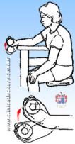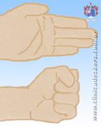 Com a mão fechada, flexionar e estender o punho, 30 vezes para cima e 30 para baixo.