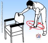 Curvar o tronco para frente e apoiar o braço não operado em uma cadeira alta, deixar o braço operado pender para baixo e fazer movimentos pendulares (em círculos) 30 no sentido horário e 30 no sentido anti-horário.