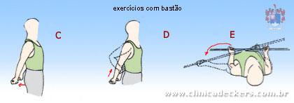 Levantar e abaixar o bastão dobrando os cotovelos.