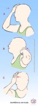 Sentar reto, aplicar uma pressão com as pontas dos dedos na parte de trás da cabeça, provocar resistência inclinando a cabeça para trás.
