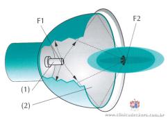 As ondas de choque passam a ser propagadas em todas as direções pelo líquido e vão de encontro a um refletor. Este refletor está dimensionado geometricamente para refletir todas as ondas de choque de maneira que elas se concentrem em um ponto chamado de F2. Assim temos o F2 como nosso foco terapêutico, que será aplicado à região a ser tratada.