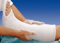 O material, que estará molhado, será enrolado como uma bandagem sobre o acolchoamento e endurecerá em alguns minutos.