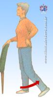 A perna do lado lesionado deve estar, aproximadamente, 40 cm atrás da perna do lado são.