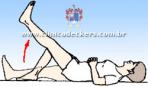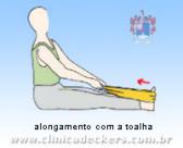 Paciente deve estar sentado na cama, com a sua perna lesionada estendida à sua frente e com uma toalha, laçar o pé, puxando-o em direção ao tronco.