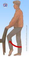 Levar a perna operada para trás e apoiar uma mão na parte inferior das costas, para não forçar a coluna.
