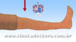 Puxar a ponta do pé no sentido do joelho e depois no sentido contrário.