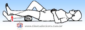 Colocar um travesseiro alto embaixo do joelho e, com a ajuda da fisioterapeuta, esticá-lo.