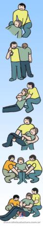 O transporte "em berço" consiste em agachar atrás da vítima, passando um de seus braços em volta do tronco, acima da cintura, e o outro por baixo das coxas.