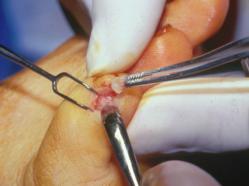 Pode-se proceder a remoção da hiperqueratose com uma lâmina de bisturi, até atingir um tecido viável. No entanto, deve-se eliminar a causa da pressão (calçado inadequado ou proeminência óssea).