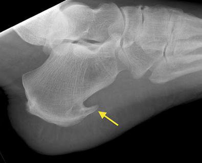 O esporão de calcâneo é habitualmente confirmado, após exame clínico, por exame de raios X. É uma forma de exostose, uma excrescência óssea.