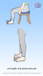 Em uma cadeira com os pés nivelados ao solo, suavemente elevar os dedos do pé lesionado, mantendo o calcanhar no chão.